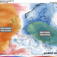 A developing pattern across Europe suggests there will be a significant cold blast (locally 5-8°C colder than average days) from north towards central Europe and …