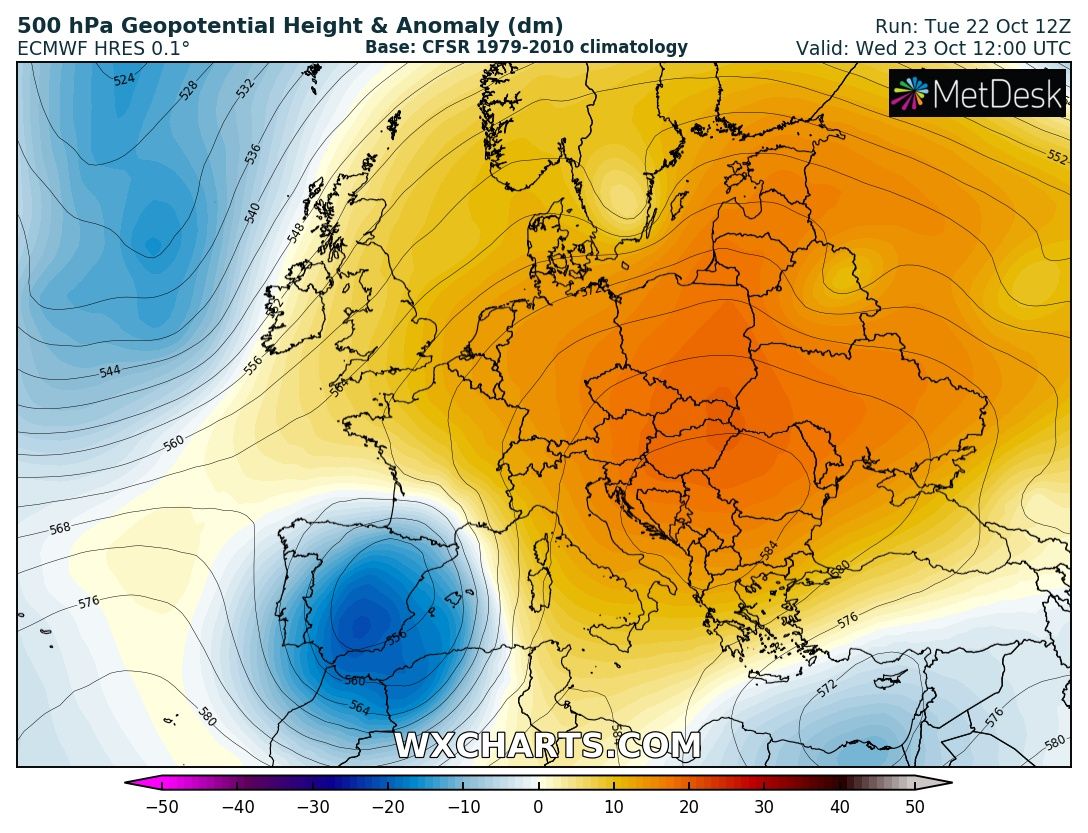 The pattern supporting this activity reveals a strong ridge across E Europe with a deep upper low over the Iberian peninsula, moving into W Mediterranean. Ahead of the low, strong warm / moist advection is ongoing towards France and NW Italy.