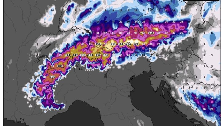 A new period of significant snowfall is developing across the northern Alpine flank as a textbook Stau event takes place this weekend. A persisting strong … Continue reading Extreme amount of fresh snow for northern Alps (Austria) through Jan 6th – more than 100 cm likely in places