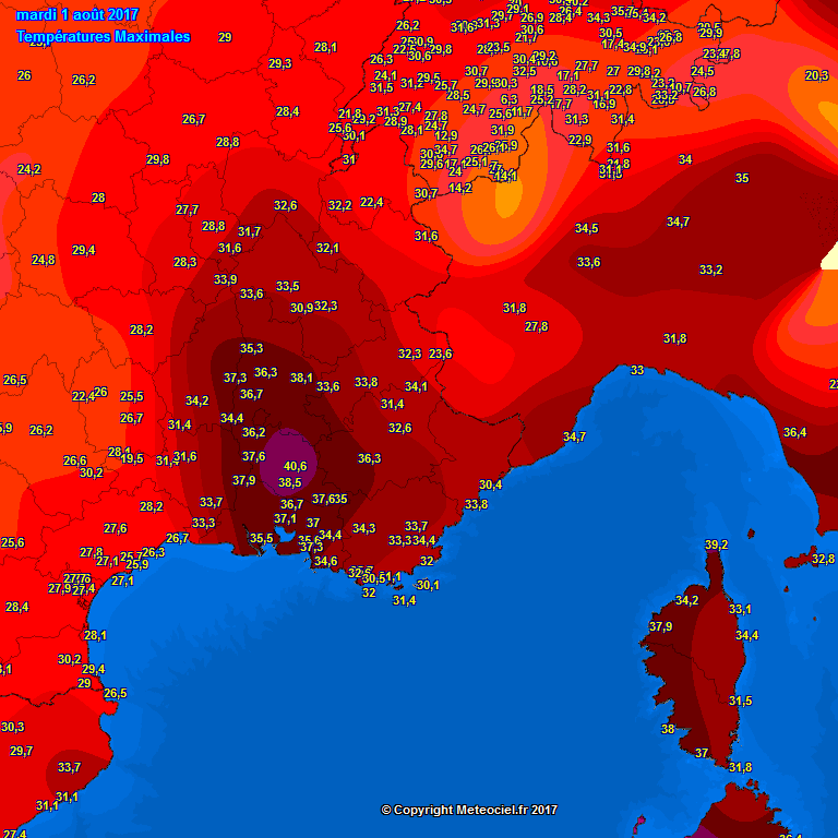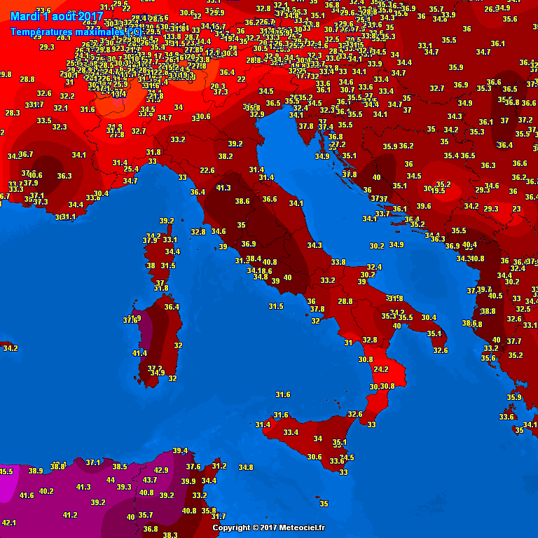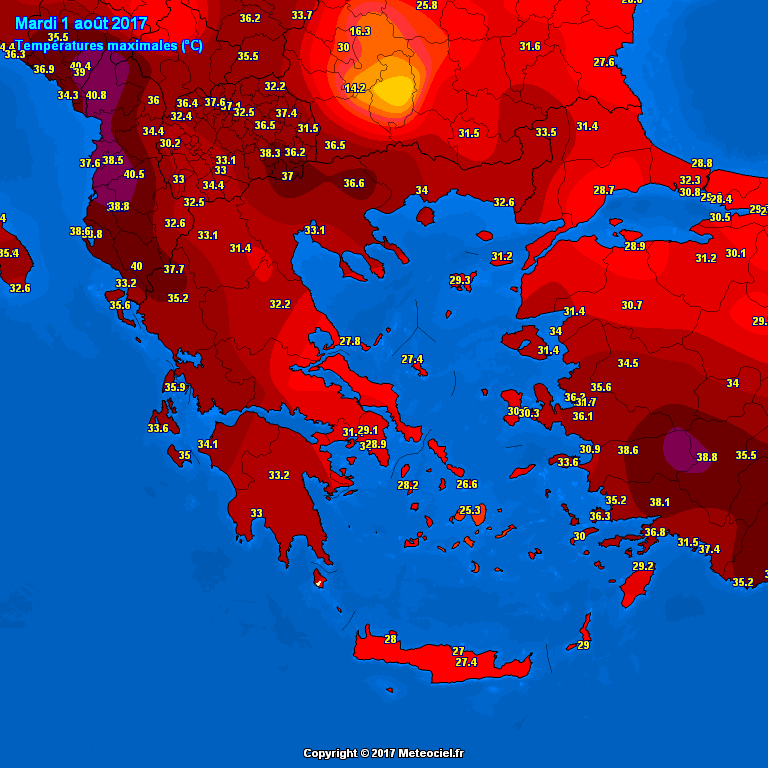 The strong blocking pattern over the eastern half of Europe as well as most of the Mediterranean remains in place and the heat wave still strenghtening. Peak temperatures yesterday reached up to 41 °C in southern France, up to 35-38°C across much of Balkan peninsula, central Europe and Italy while some areas in Italy (Sardinia + central parts) and W Balkan reached up to 42°C.