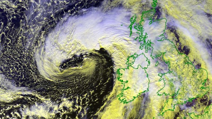 A relatively small cyclone was crossing North Atlantic through the past two days and is now entering western Europe. This afternoon, it had a quite … Continue reading Quite spectacular satellite imagery of a deep cyclone moving towards Ireland and UK tonight into Sunday morning