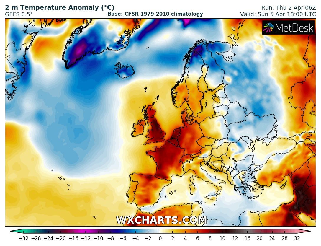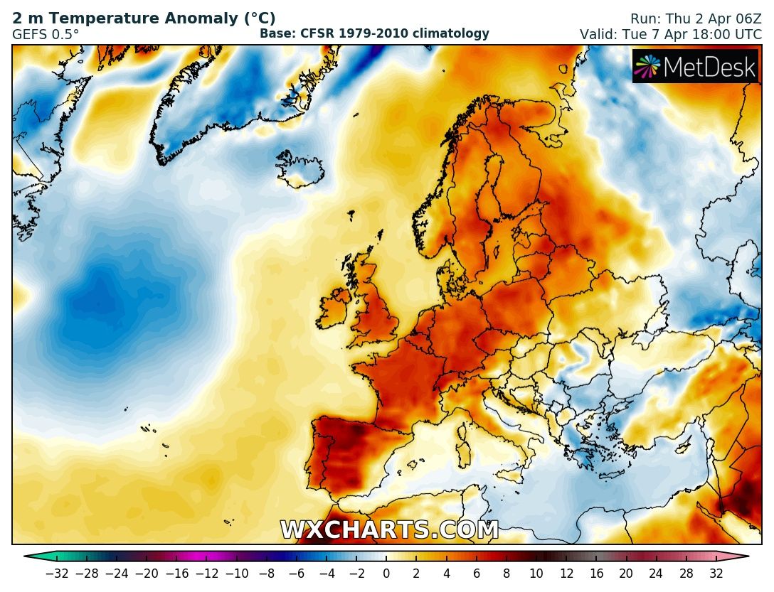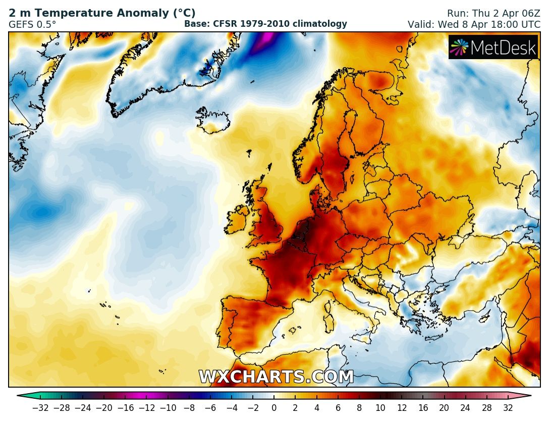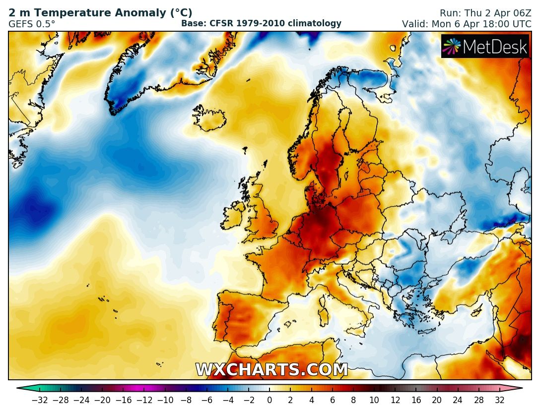 Enjoy the warmer weather. It will likely remain relatively dry across most of Europe through the first half of April, as the upper ridge is likely to persist for a longer period. Stay tuned for updates!