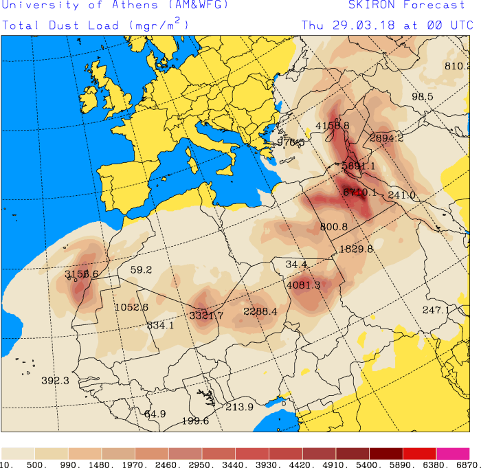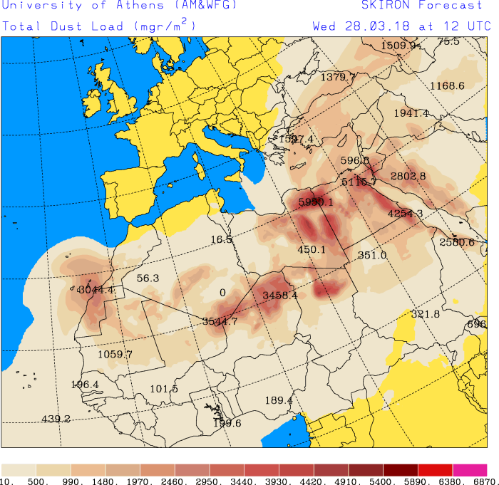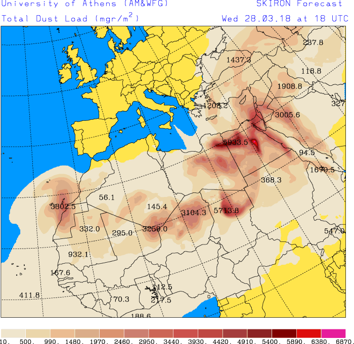 Weather pattern outlook for Europe for this week By Author Marko Korosec Posted on Published: 27/03/2018 Categories Mesoscale Discussion Archives It will also kick up a lot of Saharan dust. Major amounts for Turkey, southern Greece and Cyprus and a dust storm for the Middle East. Maps: University of Athens, SKIRON model.