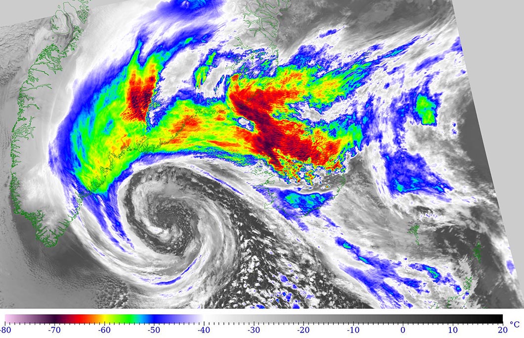 If you’re a fan of satellite images and data, this outstanding satellite presentation simply leaves you out of words. Let the photos speak a thousand words as this remarkable detail is simply epic! Attached are several images in various satellite channels, revealing many details of the dynamic cyclone.