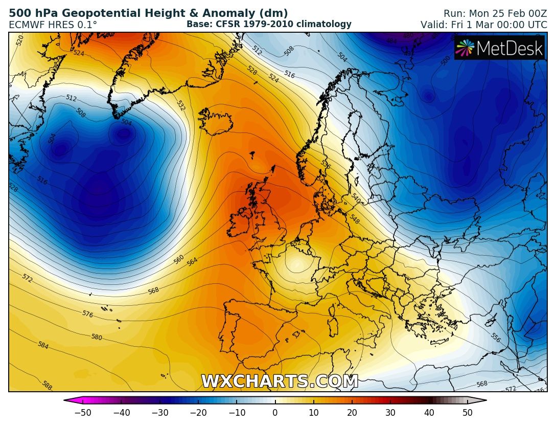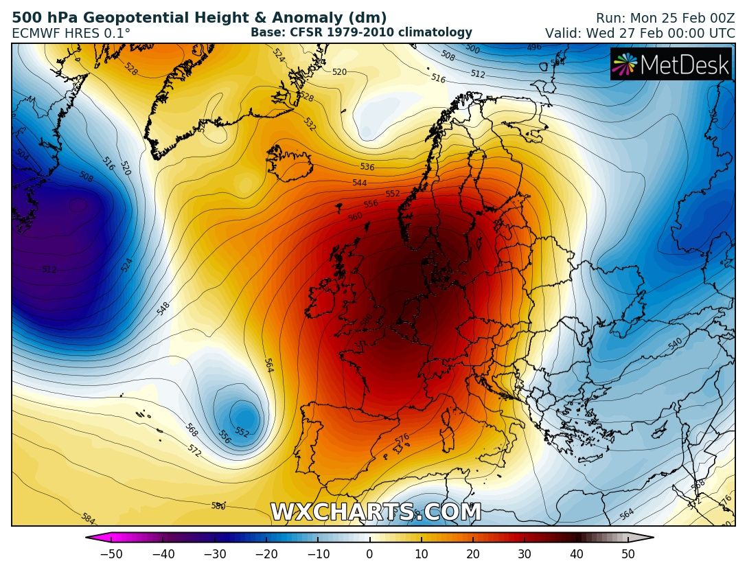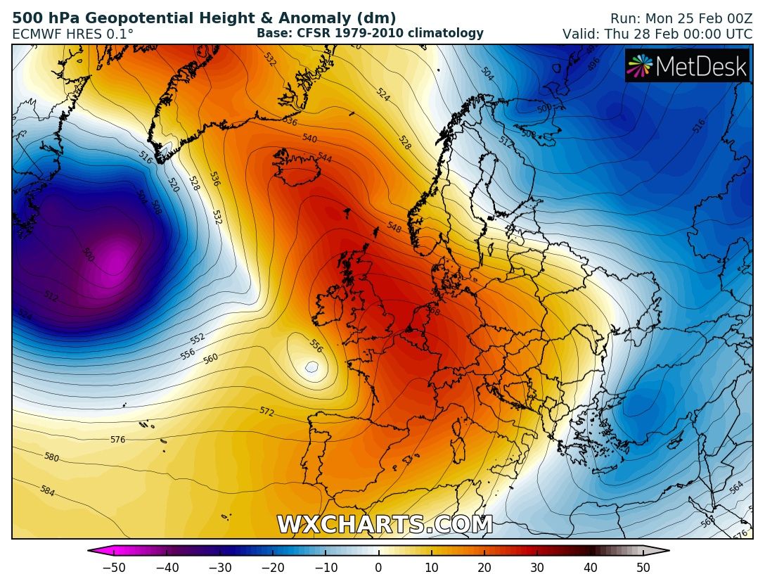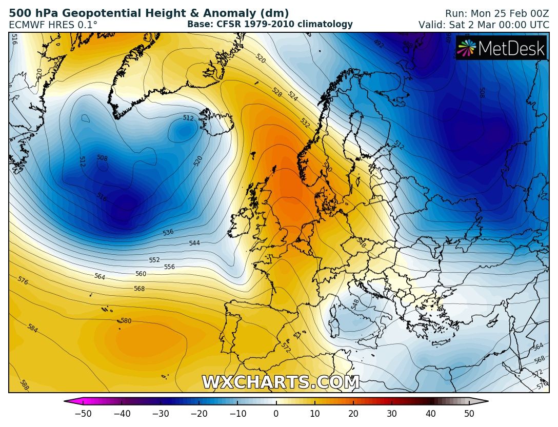 The last week of February across Europe will remain dominated by a persisting and extensive upper ridge, before the pattern gradually changes into a more dynamic weather driven by an intensifying zonal flow through early March. Let us get into daily details of the pattern evolution.