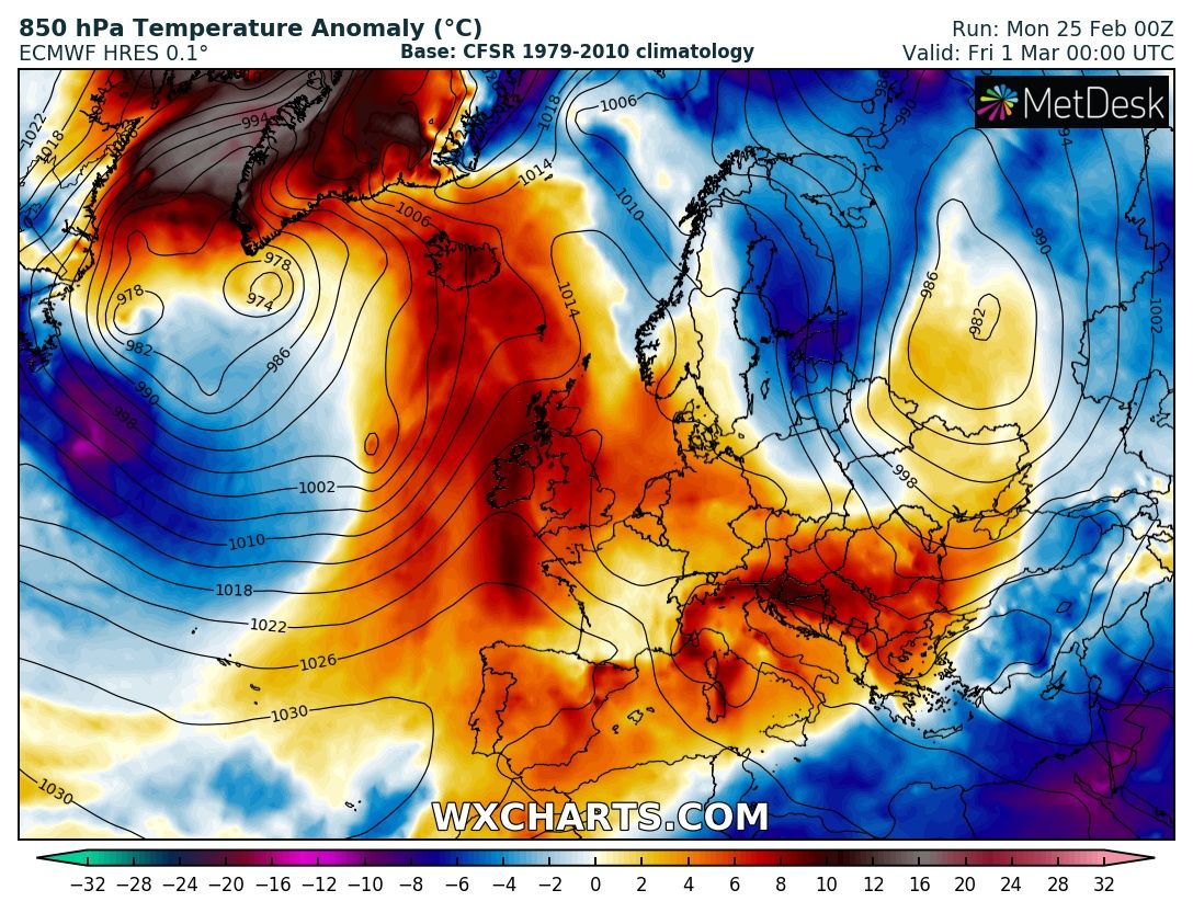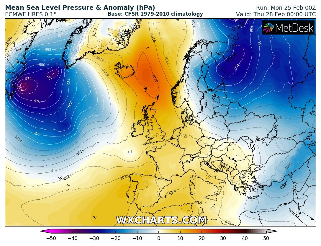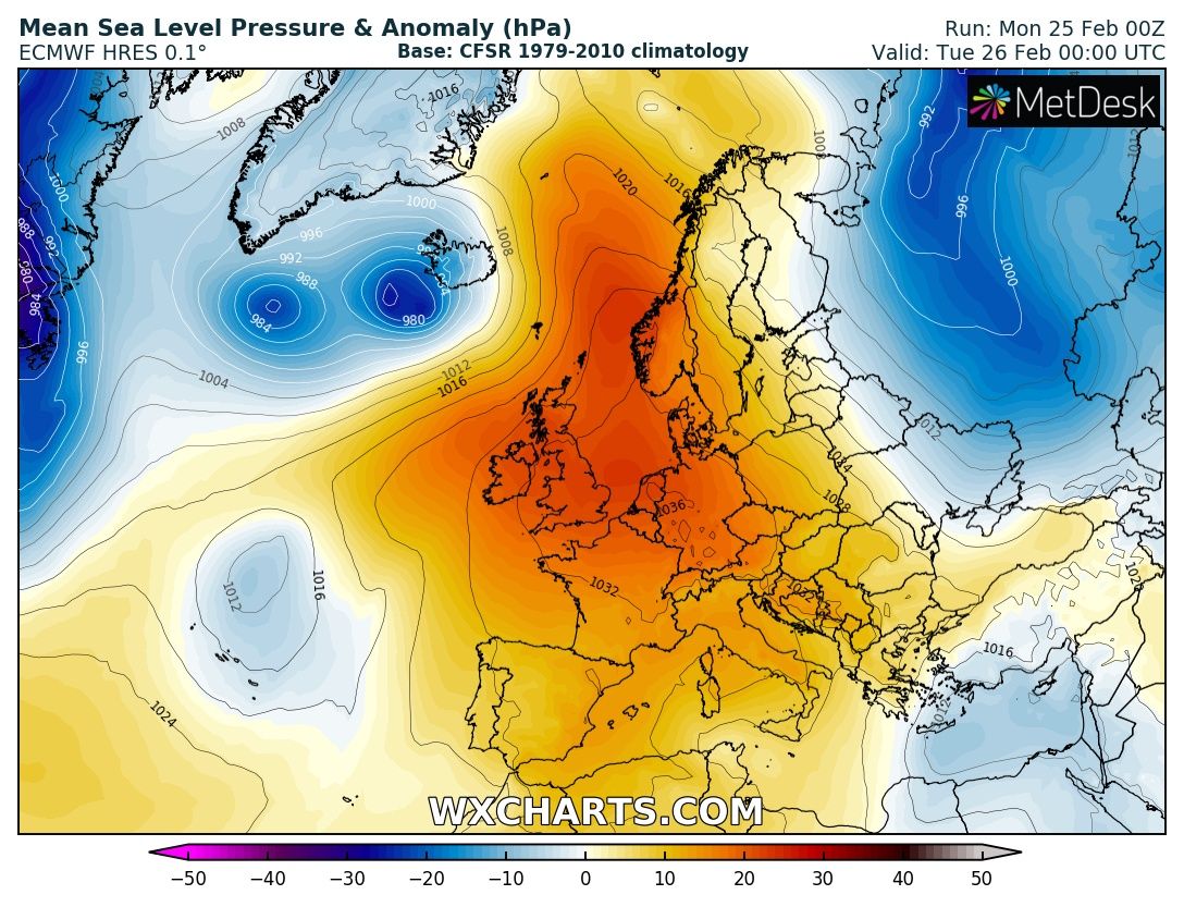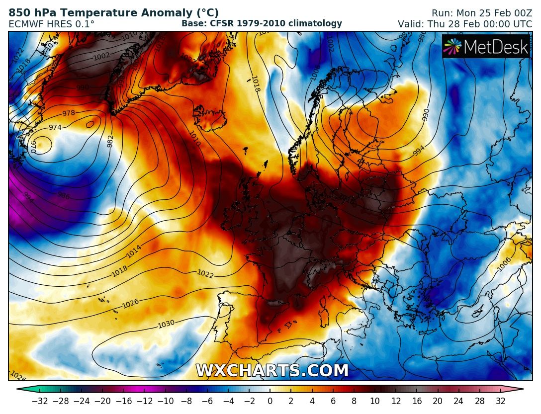The last week of February across Europe will remain dominated by a persisting and extensive upper ridge, before the pattern gradually changes into a more dynamic weather driven by an intensifying zonal flow through early March. Let us get into daily details of the pattern evolution.