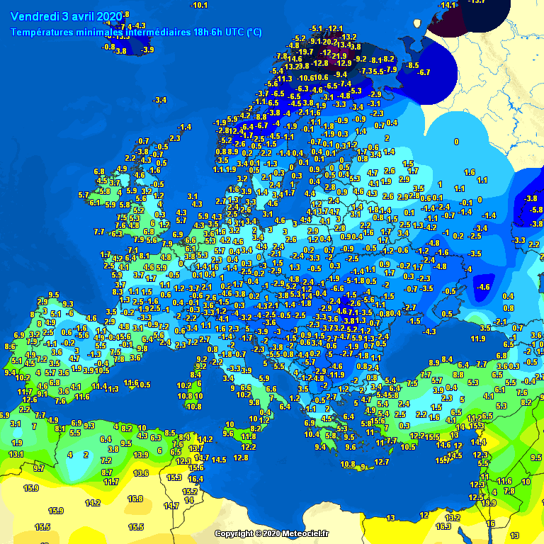Here are the minimum temperatures across parts of Europe today: