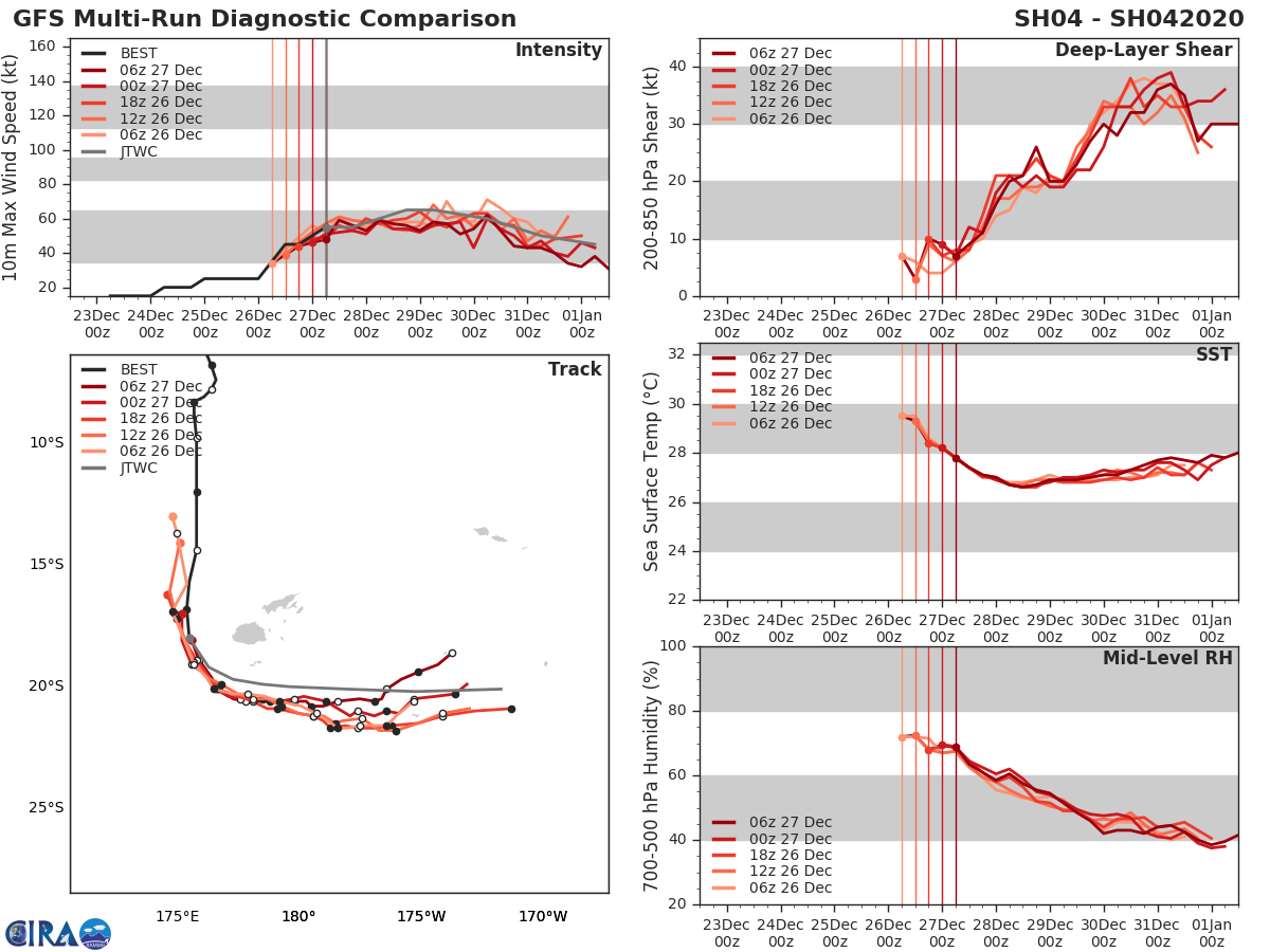 ECMWF model guidance for Sarai’s track around Fiji archipelago – notice the cyclone actually goes around Fiji and retreats back west early next week.