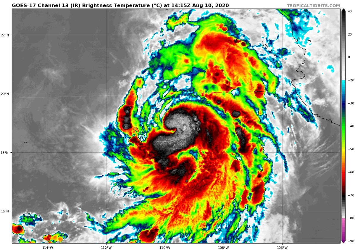 The latest IR/WV satellite imagery indicates a quite impressive compact cluster of explosive storms, with a visual appearance of the forming circulation. Tropical Storm Elida is soon becoming a hurricane!
