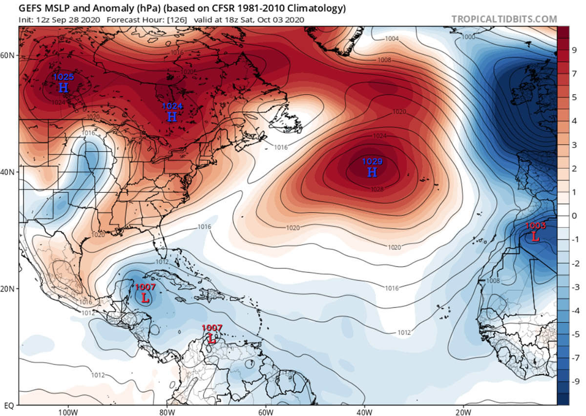 Soon after we head into October, the MJO wave will enter the Caribbean region from the west. This normally results in lowering the surface pressure and provides a strong boost to thunderstorm activity.
