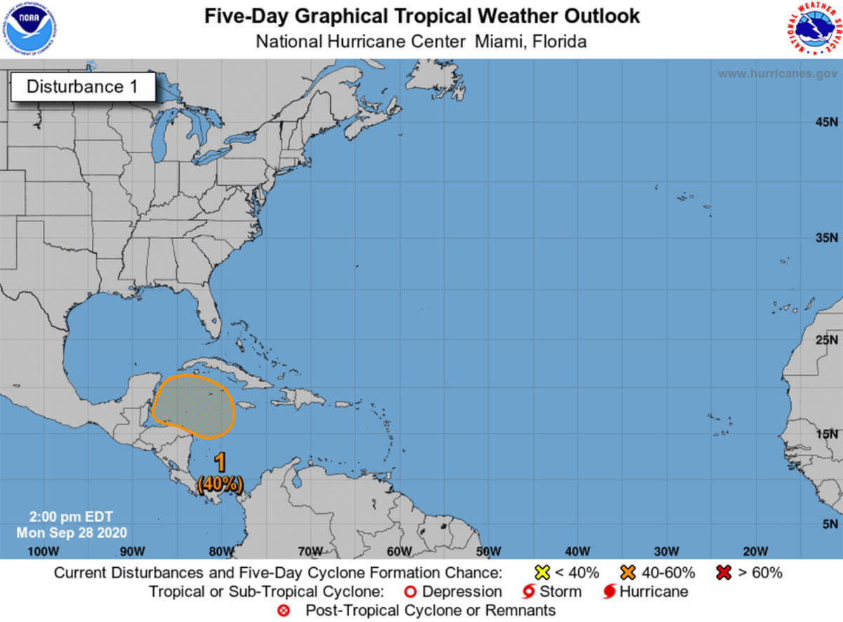 NOAA forecasters noted: “There is a broad area of low pressure is expected to form over the western Caribbean Sea in a few days. Environmental conditions are expected to be conducive for some gradual development thereafter, and a