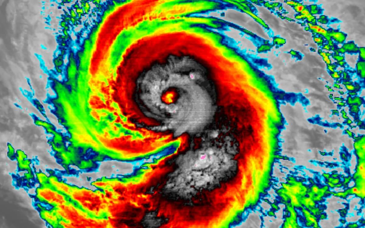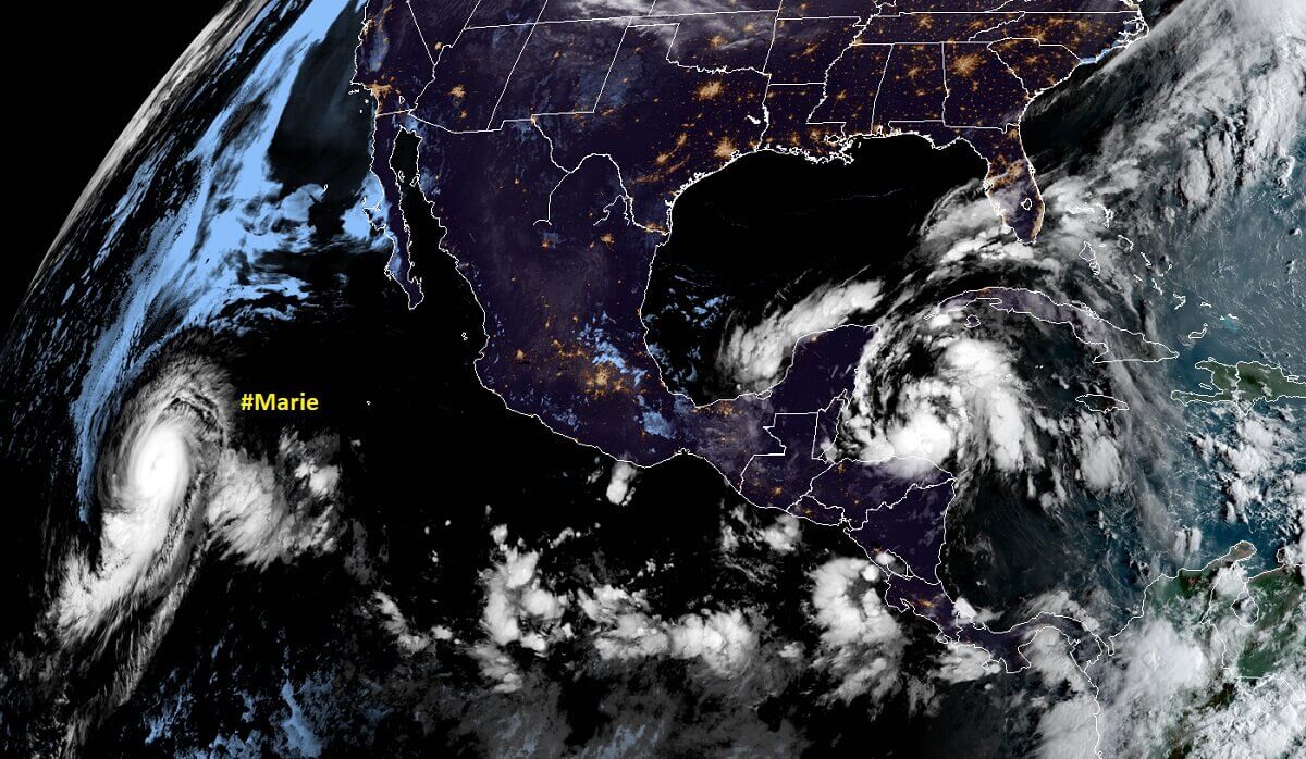 Below is the Geocolor NASA satellite image on Friday morning, notice also a Category 4 hurricane Marie over the Eastern Pacific.