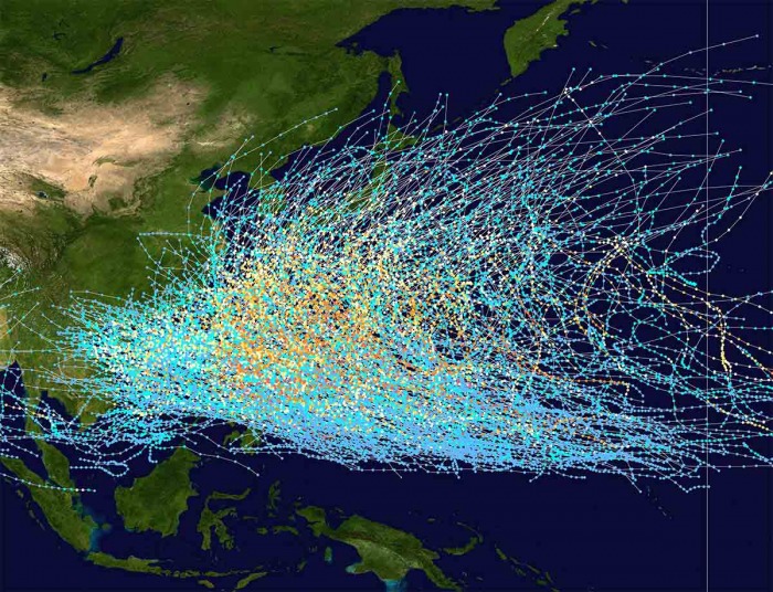 On average, there are more than 26 tropical storms and typhoons every year. These systems have a general westward track towards the Philippines, southern China, Taiwan, and Vietnam.